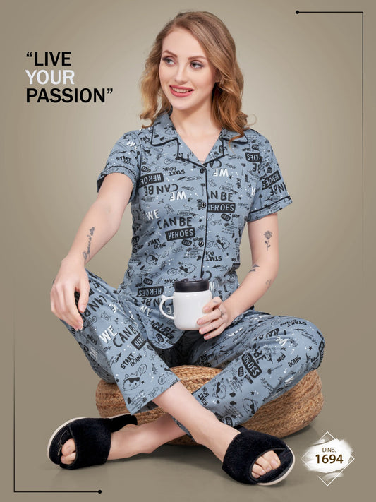 -46% OFFPrinted Button Down Nightsuit-2153 A