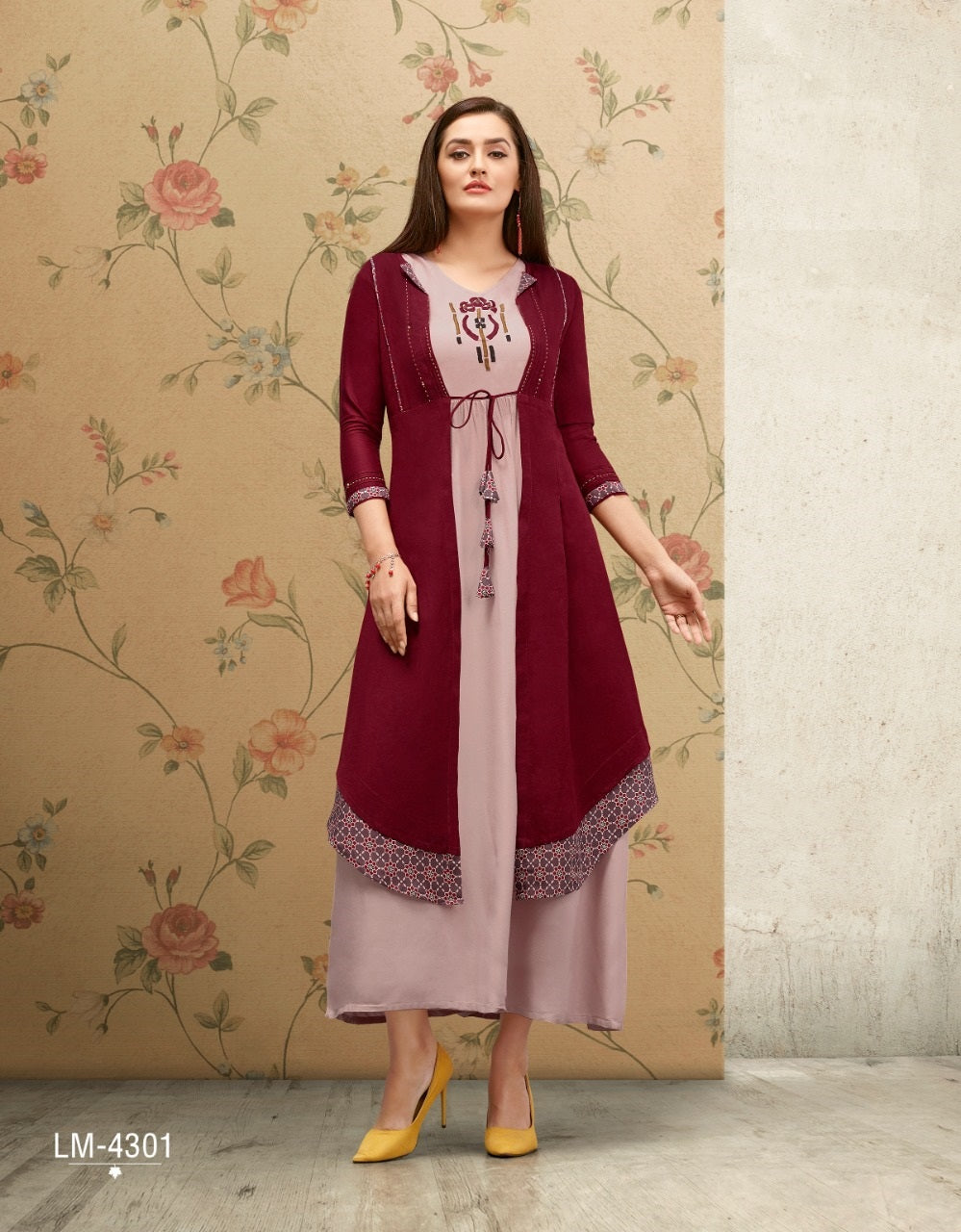 Lymi Presents Hallmark, Hand Work Rayon Long Kurti with Cotton Flex Long 3/4th Sleeves Printed Shrug.\n\nRefresh your wardrobe with this Kurti and Shrug Available on VogPap.Com. This Long Kurti Shrug is a Perfect Partner for all Your Casual Wear Needs.